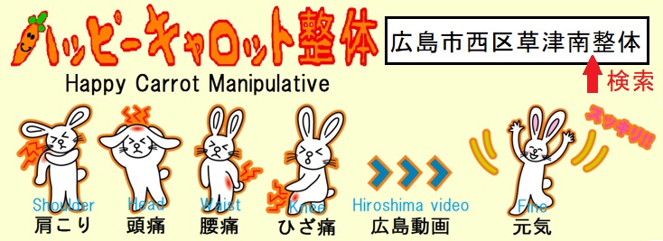 肩こり 腰痛 頭痛 膝痛 広島動画 ハッピーキャロット整体(広島市西区草津南)